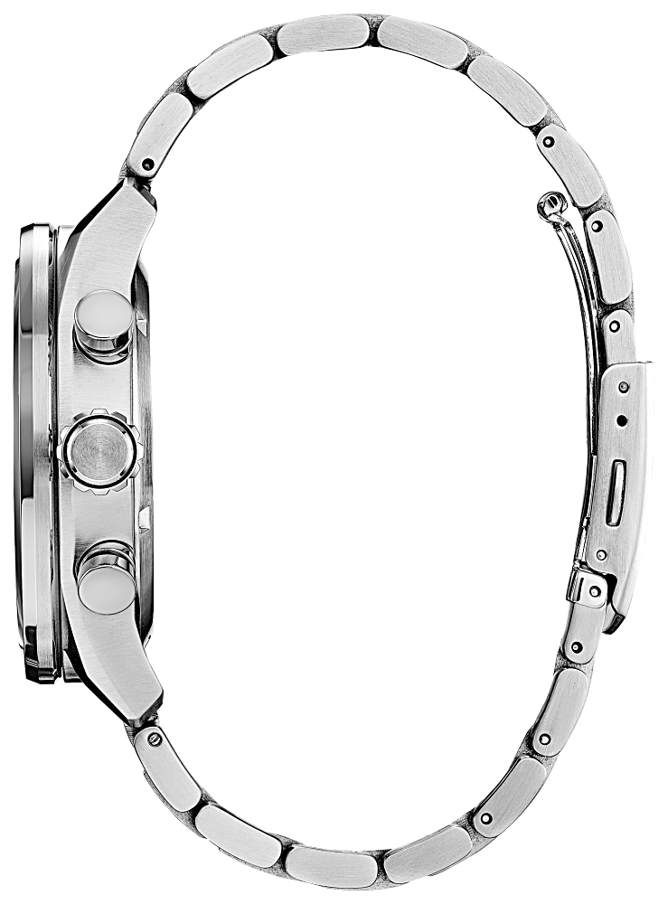Effortlessly combining technological functionality with rugged sports watch design, the Brycen is a spirited expression of contemporary Citizen design. The robust silver-tone stainless steel case measures 44mm in diameter and has two distinct pushers on either side of the crown. Secured to the wrist by a silver-tone stainless steel bracelet, the timepiece is comfortable on the wrist and ready-for-anything with its water resistance of 100 metres. The blue display of the chronograph is accented with vibrant orange details and framed by a matching azure bezel, creating an ultra-sporty appearance from case to dial. Features of the timepiece include a 1/5 second chronograph measuring up to 60 minutes, 12- and 24-hour time, and date indication. Powered by Citizen’s proprietary Eco-Drive technology to provide light-powered vitality without ever needing a battery. Calibre B612.