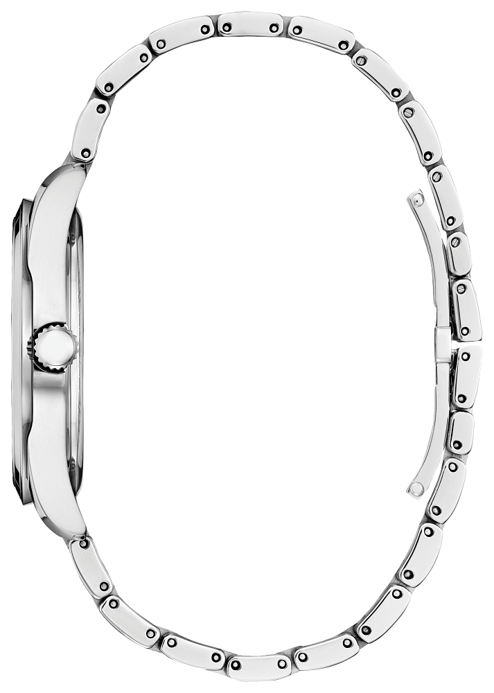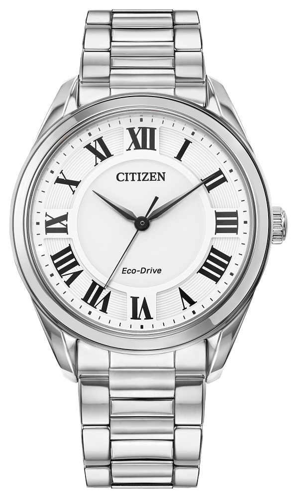 Make a statement wearing this sophisticated, classically styled Fiore ladies’ watch by Citizen. This sleek watch with its white dial, silver stainless steel bracelet band with deployment clasp and bold Roman numeral markers stands out from the crowd while remaining understated. This is a modern twist on a classic design, featuring a genuine Sapphire crystal and Citizen’s Eco-Drive technology that sustainably powers itself by light. This women’s classic dress watch in stainless steel features three hands and a minimalist face, giving you a refined look and upscale feel. Never compromise with the bold and elegant line of Fiore watches by Citizen.