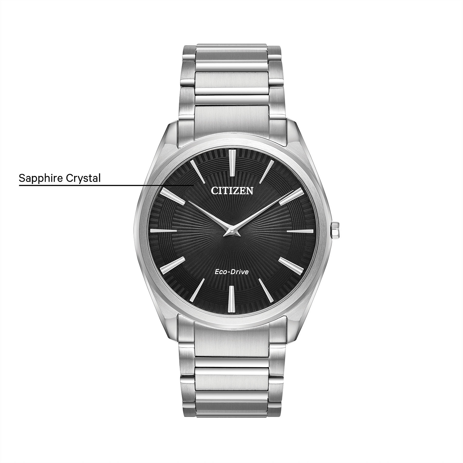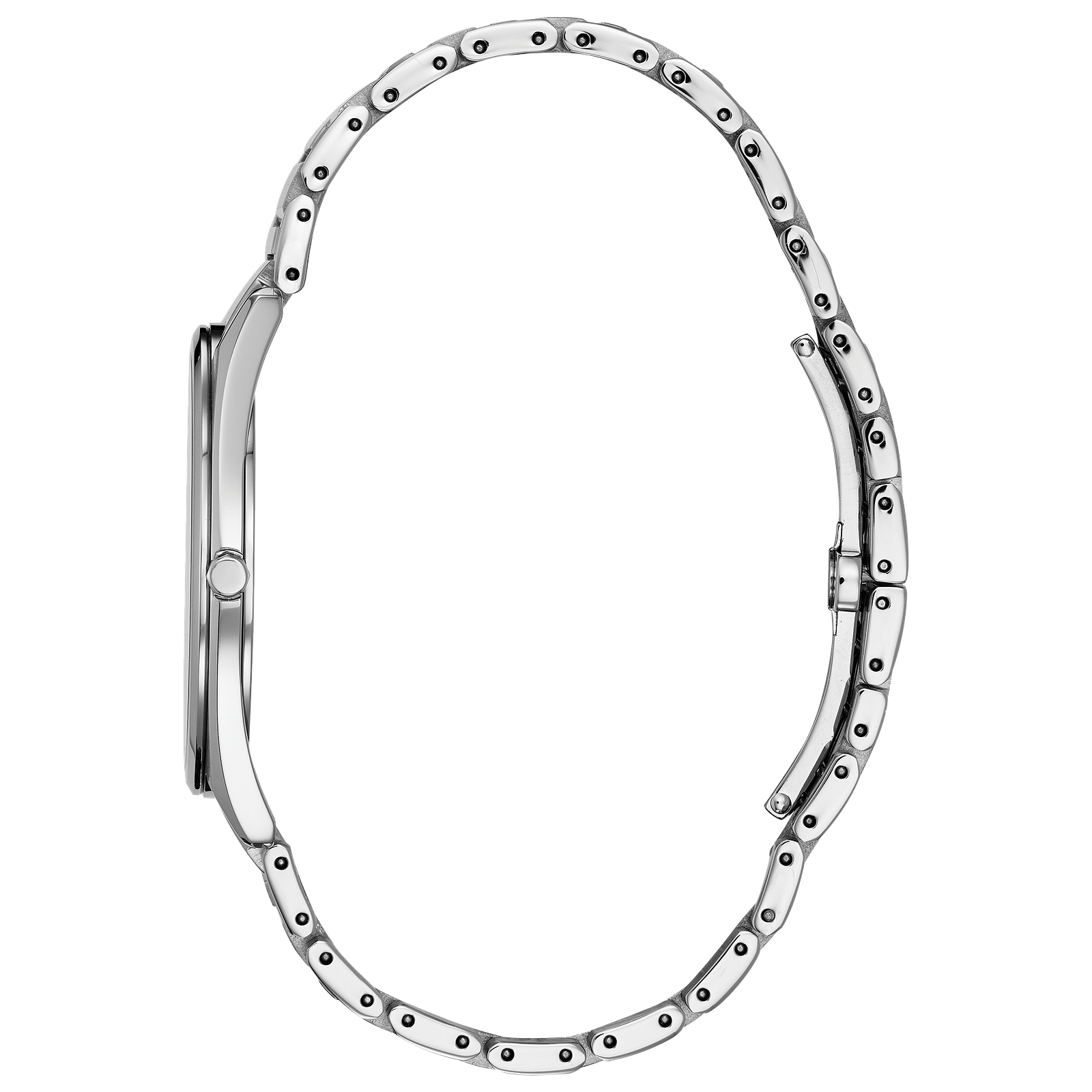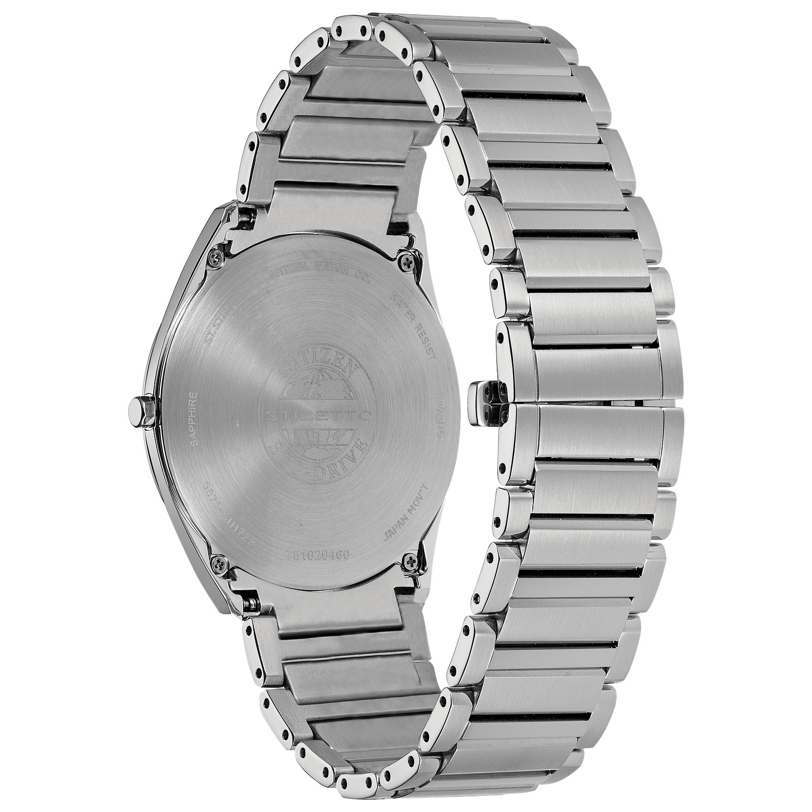 Sleek, contemporary and ultra-thin are key components to the revitalized CITIZEN Stiletto collection. At just 4.7mm thick, the Stiletto is powered by any light with Eco-Drive Technology and featured in stainless steel with black Guilloché dial. Caliber number G870.