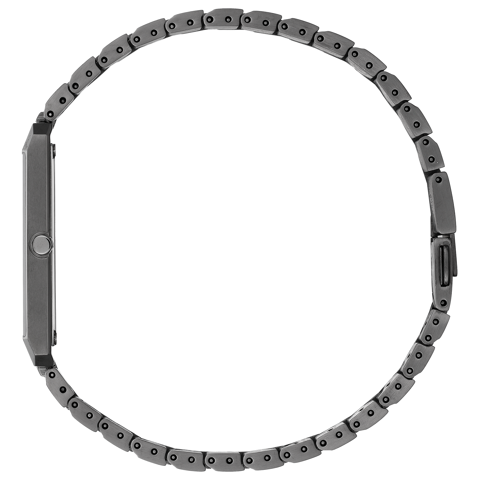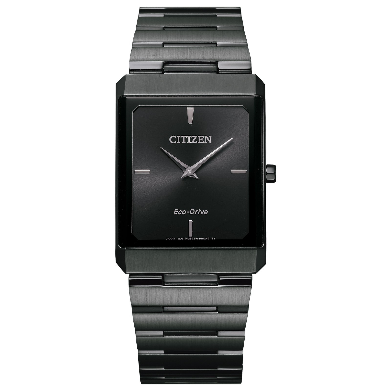 The bold square style of the Large Stiletto Tank is a timepiece not to be missed. The black stainless steel band and case and black dial makes for a sleek package. This watch capitalizes on Citizen’s long history of designing fine, slim timepieces with a case just 5.06mm (+/- .25mm) thick, for a comfortable fit for anyone who puts it on. With Eco-Drive technology and a unisex aesthetic, this sophisticated watch also features a jewelry-style clasp that lays completely flat against the arm. This is truly a watch that can’t be missed.